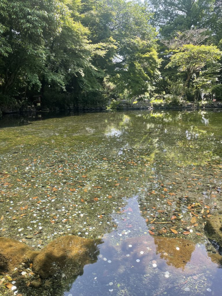 富士山の雪解け水でとてもキレイです。池の底には硬貨がたくさん。