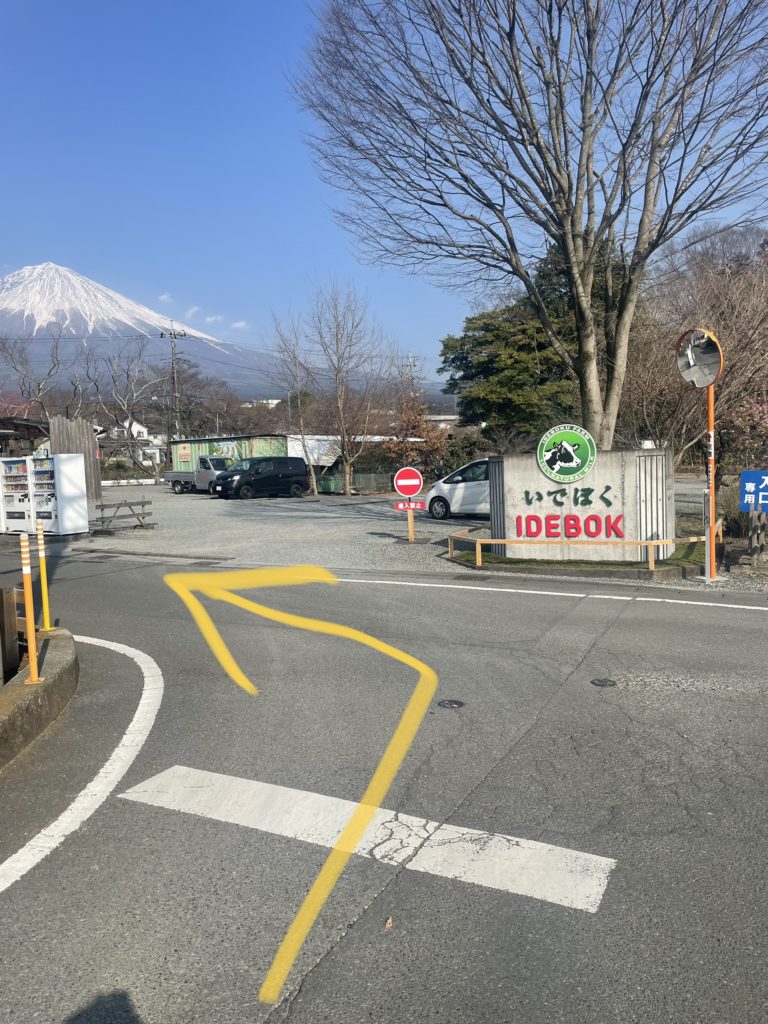 ナビの設定を一旦「いでぼく(富士宮市北山4404−2)」で設定していただいて、いでぼくに着いたら以下で紹介している写真の通りに来ていただけるとスムーズかと思います。